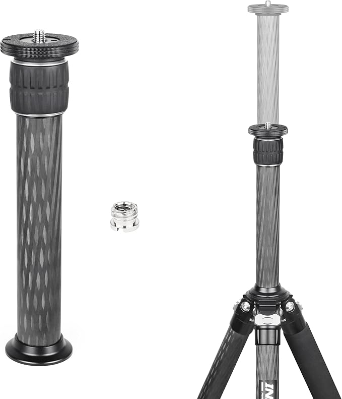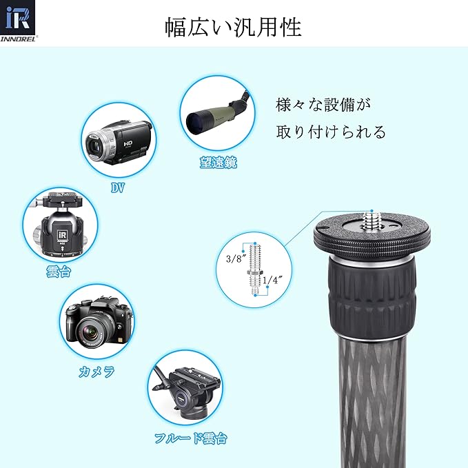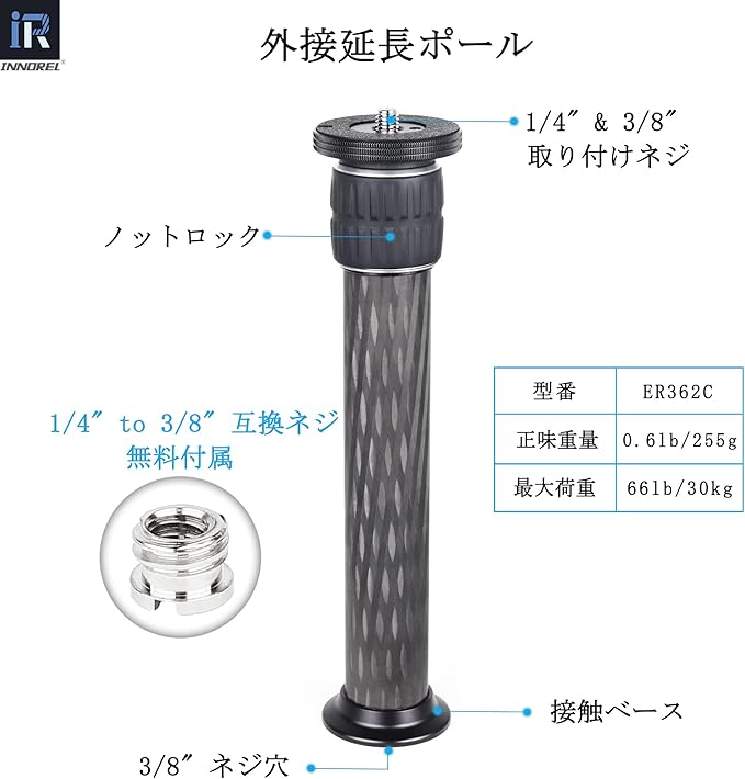 【汎用性】1/4”3/8”二つ種類のネジサイズ、カメラ、三脚、一脚など多数の設備が取り付けられる。汎用型三脚用延長ポールです。