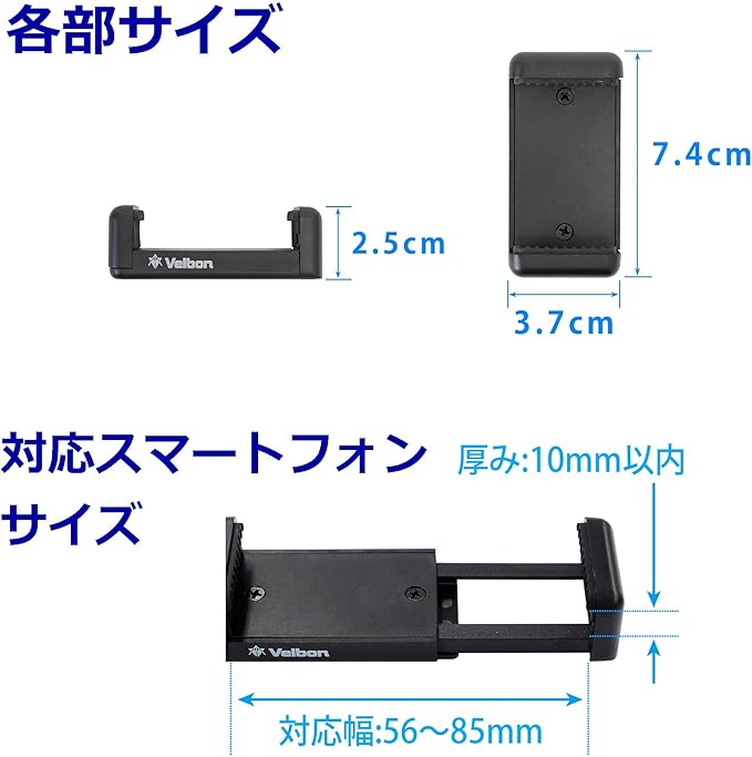 取付可能スマートフォン : 幅56-85mm / 厚み10mm以内