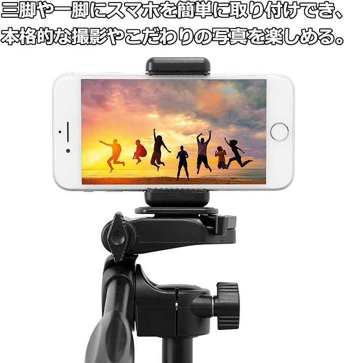 三脚などにスマートフォンや携帯電話を簡単に取り付けできるアダプター。