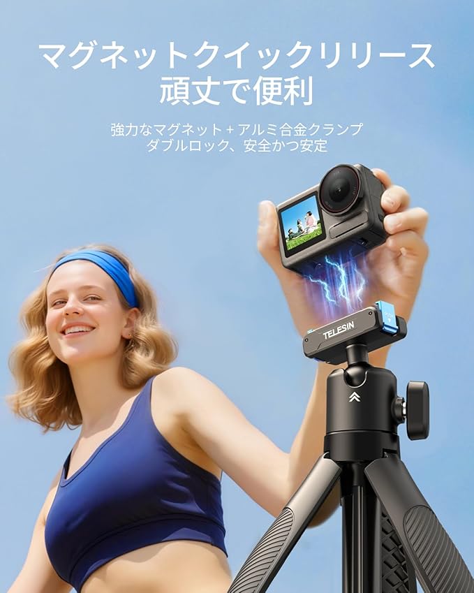 【迅速な取り付けと取り外し】 DJI Osmo 360 & DJI Osmo Action 5 Pro/4/3専用に設計され、磁気吸着式クイックリリースアダプターを搭載。カメラを瞬時に吸着し、しっかりと固定するため、撮影角度の調整を繰り返す必要がありません。これにより、素晴らしい瞬間を捉えることに集中でき、面倒な取り付けや調整の手間から解放されます。注意:DJI Osmo Action 2および他のアクションカメラモデルには対応していません。