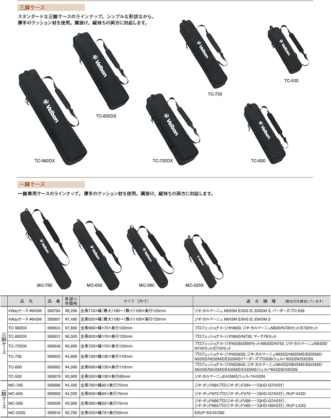 ブランド : Velbon (ベルボン) / メーカー型番 : TC-720DX (JAN: 4907990389848)