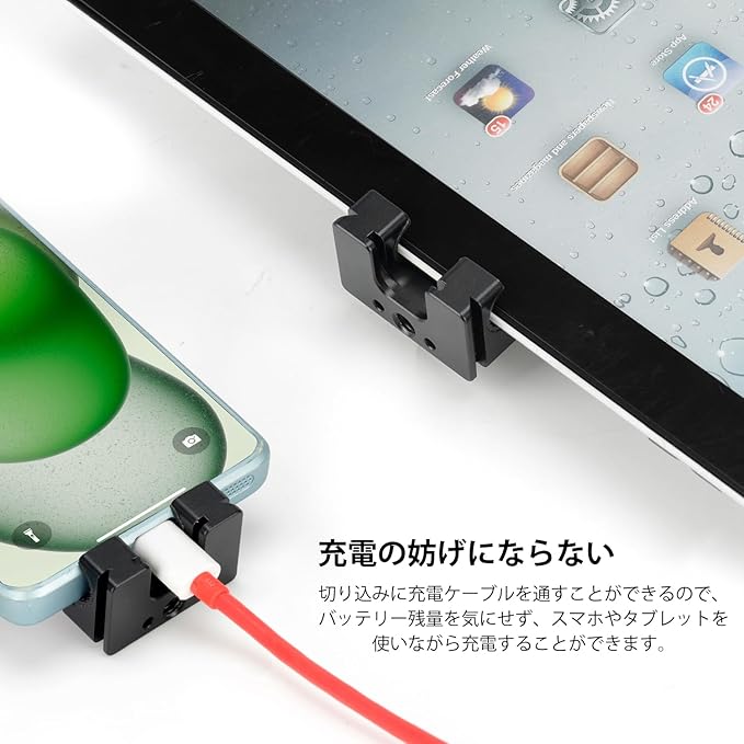 【クイックリリース&微調整設計】ユニバーサルタブレットクランプホルダーを採用。クイックリリースノブをリリースするだけで幅を調整できます。微調整ノブでさらに調整でき、しっかりとしたグリップを確保できます。タブレットとの接触面には保護シリコンパッドが付いており、タブレットへの傷を防ぐと同時に摩擦を高め、安定性を確保します。