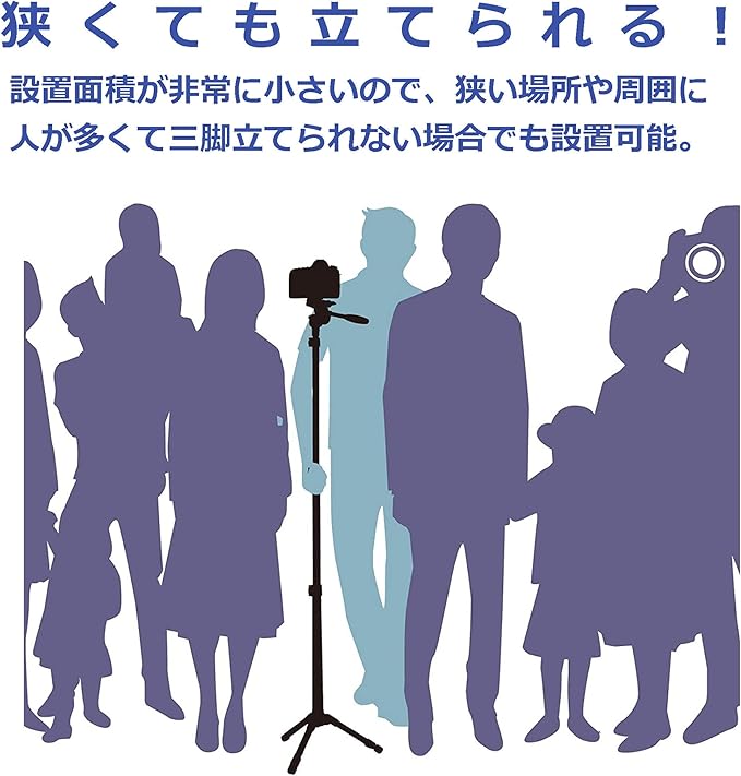 三脚に比べ設置面積が非常に小さいので、狭い場所や周囲に人が多くて三脚がセッティング出来ないような場合にも大変便利です