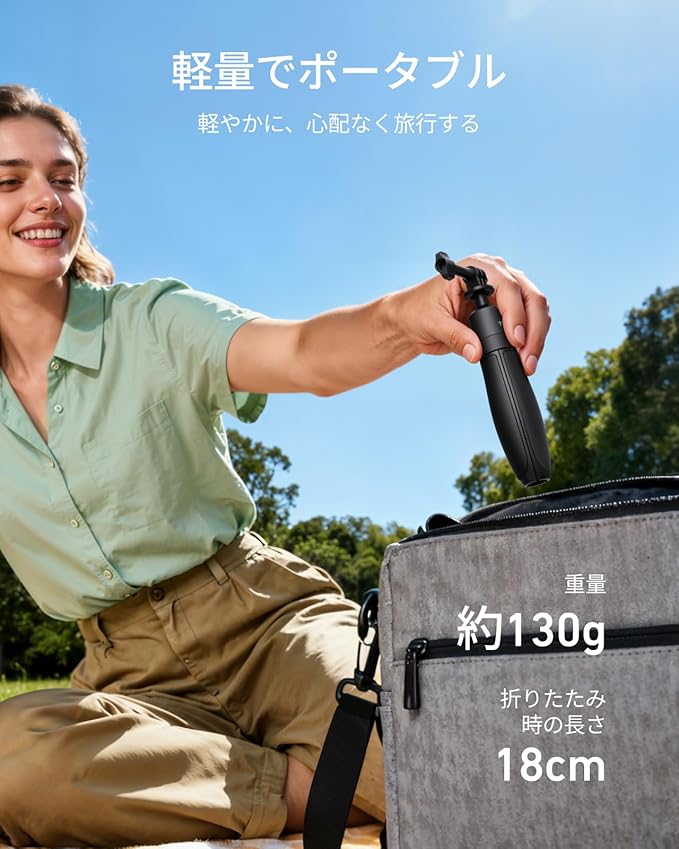 【超軽量・ポータブル設計】 わずか 130g の超軽量設計で、折りたたむと長さはわずか 18cm になり、バックパック、ポケットまたはカメラバッグに簡単に収納できます。日常の外出、屋外探険、旅行撮影など、どのシーンでも手軽に持ち運ぶことができます。コンパクトなサイズと軽量な重量が完璧に融合し、いつでもどこでも素晴らしい瞬間を捉えることができます。