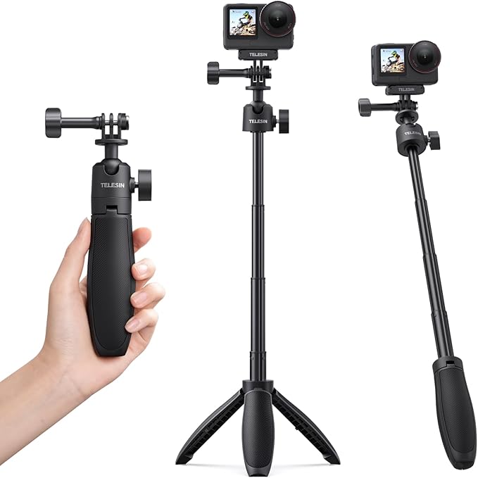 TELESIN GoPro/DJI Action/Insta360 用 ミニ延長ロッド 三脚マウント 46cm自撮り棒 アクションカメラアクセサリー 360 回転 縦撮り対応 一脚 卓上三脚 軽量 セルカ棒 折りたたみ 4段伸縮 vlog撮影 小型で持ち運びに便利 DJI Osmo Action 6/5 Pro/4/3 Insta 360 Ace Pro 2/ Ace Pro アクセサリーに対応 | KAZESHOP