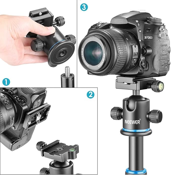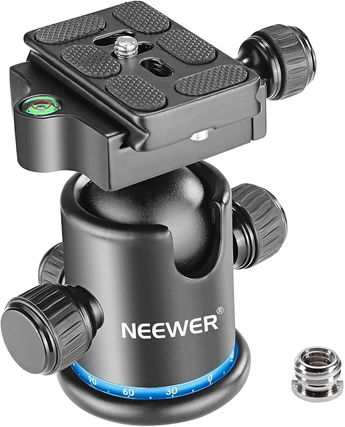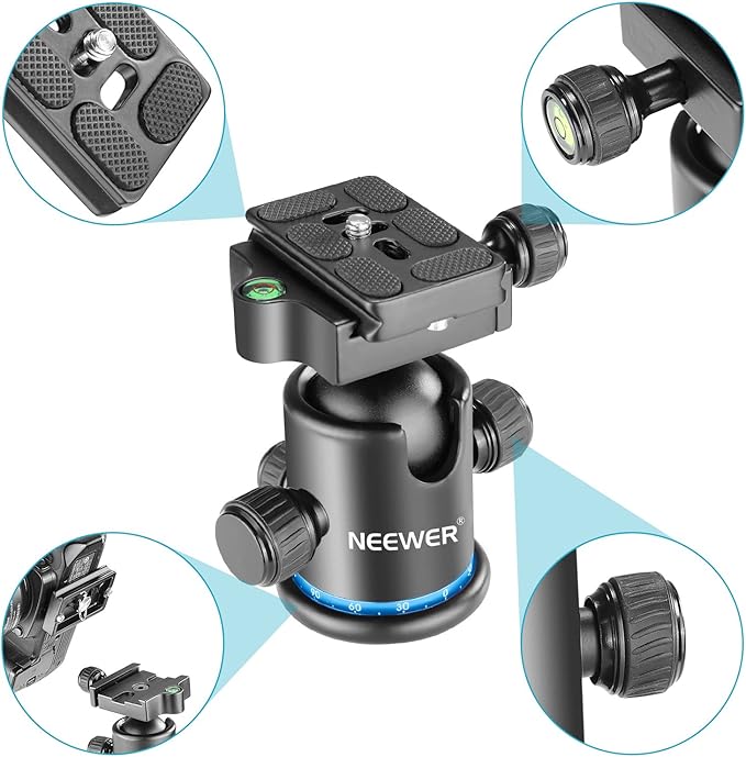 Neewer プロメタル三脚ボールヘッド 360度回転可 1/4インチクイックシュープレート、バブルレベル付き 三脚/一脚/スライダー/DSLRカメラビデオカメラに対応 耐荷重8kg(黒+青) | KAZESHOP