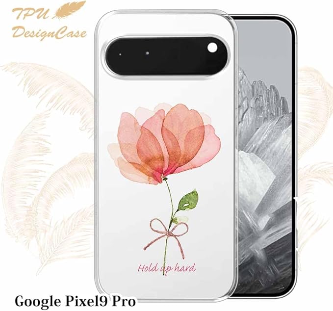 AnglersLife ソフトケース TPUケース Google Pixel 9 Pro クリアケース グーグル ピクセル9 Pro ケース 花柄 ピンクの花 困難に打ち勝つ