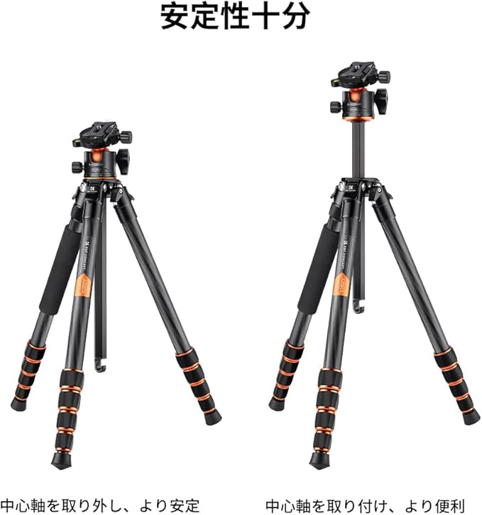 K&F Concept 一眼レフ三脚 カーボン製カメラ 三脚 軽量コンパクト 360度パノラマ撮影一脚可変 最大耐荷重15kg BH-36L雲台搭載 デジタルカメラ ミラーレスカメラ用 中心軸反転 ナットロック式 型番 A255C2+BH-36L | KAZESHOP