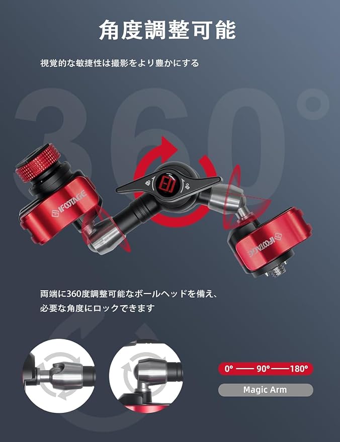 【フレキシブルで調整可能】両端に360度調整可能なボールヘッドを装備し、ロックノブを回転させ、必要な角度にロックすることができます