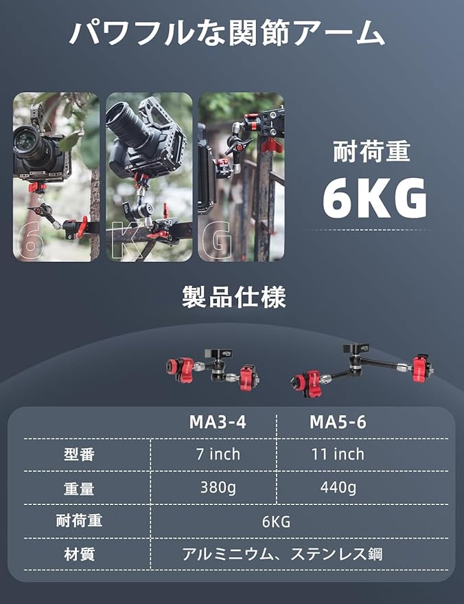 【タフなマジックアーム】アルミニウムとステンレスのオールメタル構造で、変形や破損を防ぎます; 最大負荷6KG。12ヶ月の保証と生涯アフターサービス