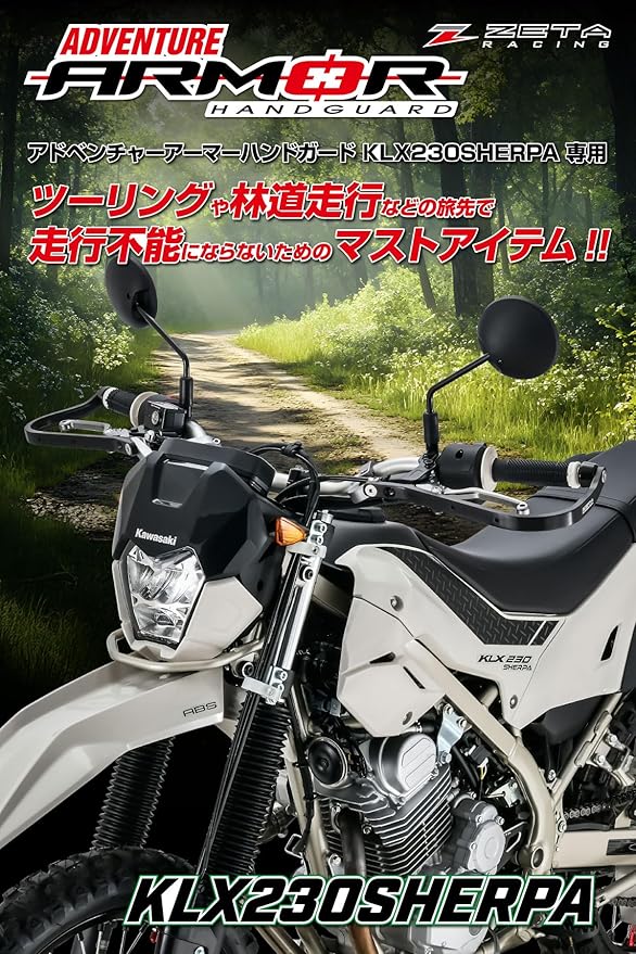 ジータレーシング(ZETA RACING) KLX230SHERPA, KLX230SHERPA S アドベンチャーアーマーハンドガード 高剛性 アルミ合金 プロテクション 純正ハンドルバー専用 D8389 | KAZESHOP