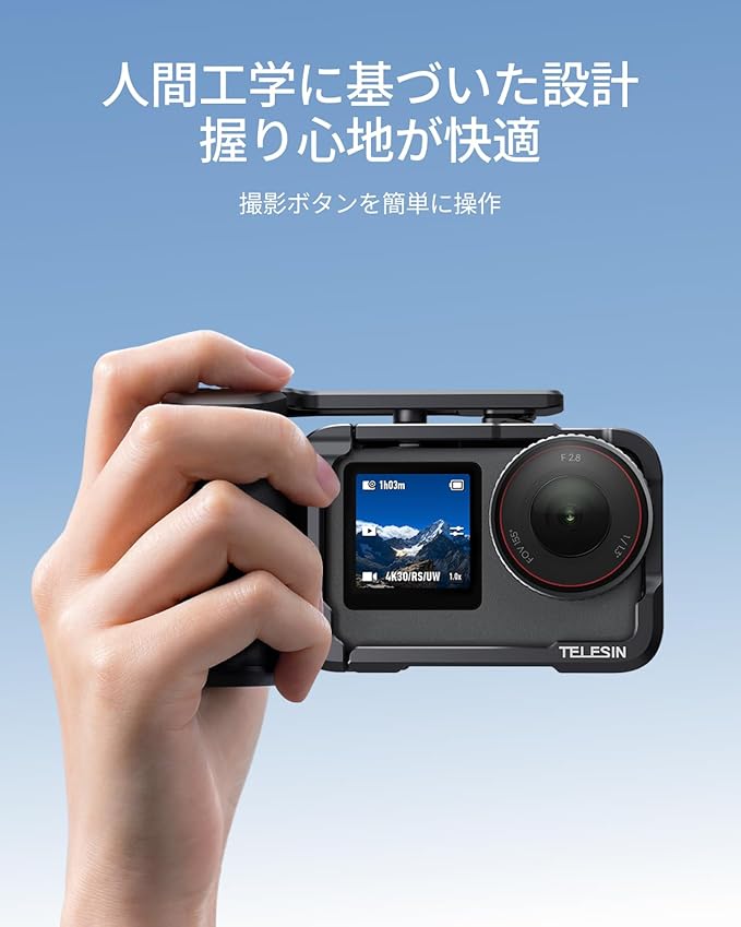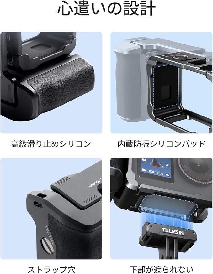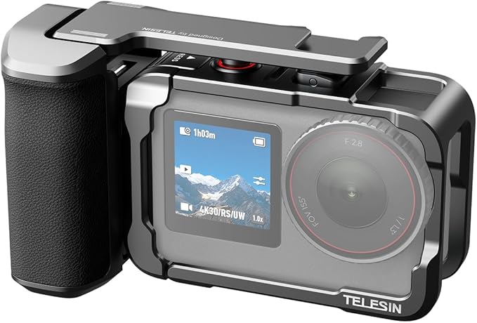 TELESIN DJI Osmo Action 6 用 グリップキット アルミ合金ケージキット ストリート撮影用 縦横撮影 保護フレーム 接続可能 三脚 自撮り棒 補光ライト マイクなど 1/4インチネジ穴・コールドシュー・ストラップ付き DJI Osmo Action 6 アクセサリーに対応 | KAZESHOP
