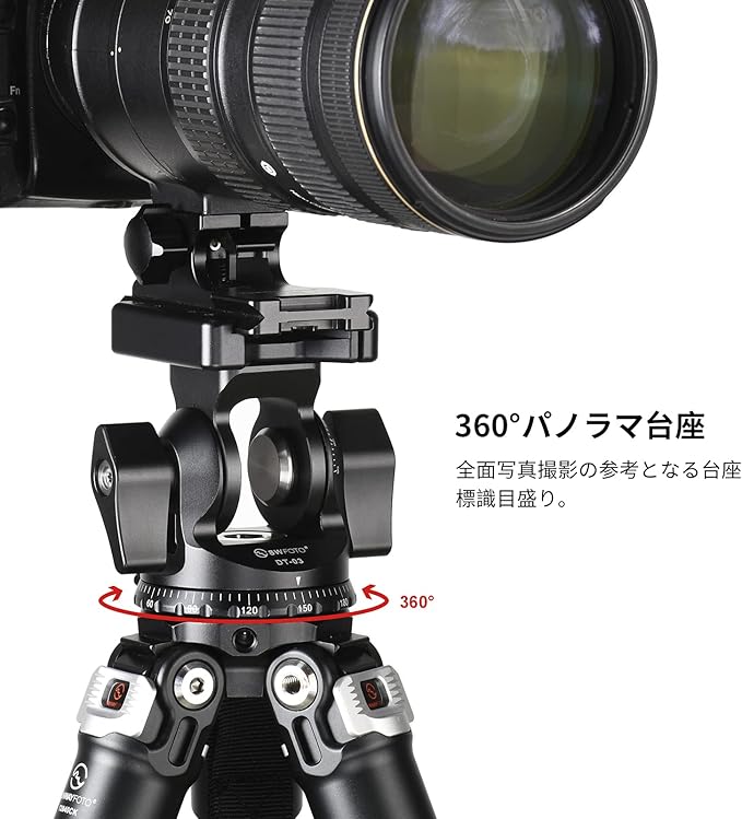 ✪雲台ベースはパノラマベースであり、360度自由に回転可能で、滑らかで滑らかであり、ロック固定も可能であり、カメラレンズの意外な回転を防止し、合焦に影響を与えます。全面写真撮影の参考となる台座標識目盛り。