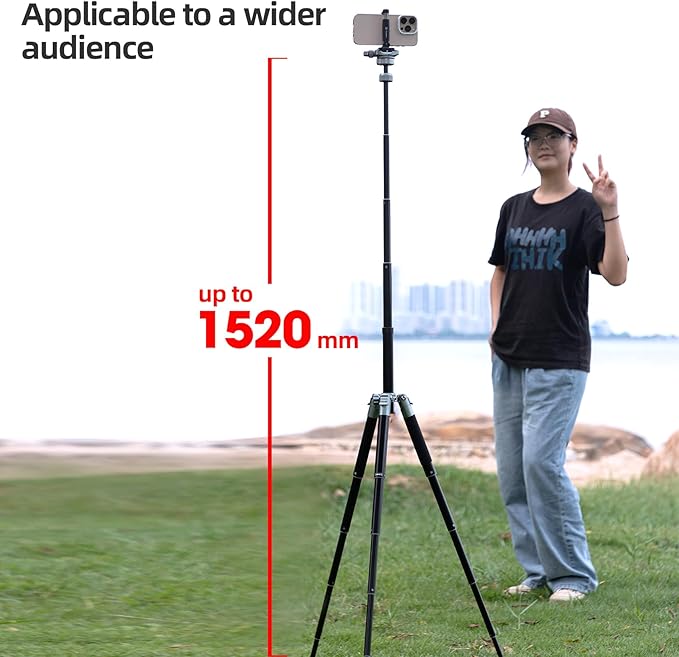 軽量でポータブル: 4段の脚は、ミニ三脚の高さを21.6CMから152CMまで調節でき、25CMまで折り畳んでキャリーバッグに収納できます