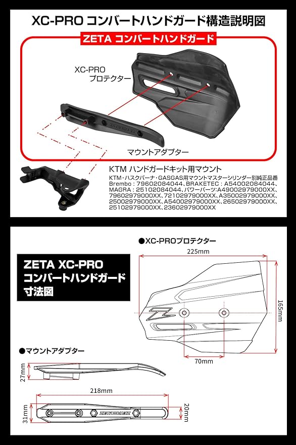 ジータレーシング(ZETA RACING) KTM HUSQVARNA GASGAS XC-PROコンバートハンドガード ホワイト ハンドガード 純正マウントに取り付け可能 G4715(旧品番:ZE74-1019) | KAZESHOP