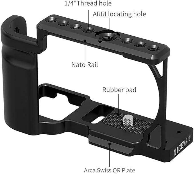 NICEYRIG カメラケージ Sony ZV-E10に対応カメラケージ フルカメラケージ アルカスイスプレート Arri規格ネジ穴 Arca規格プレートがあり アルミニウム合金製 -469 | KAZESHOP