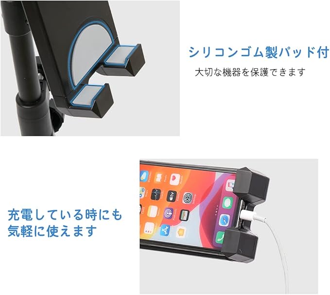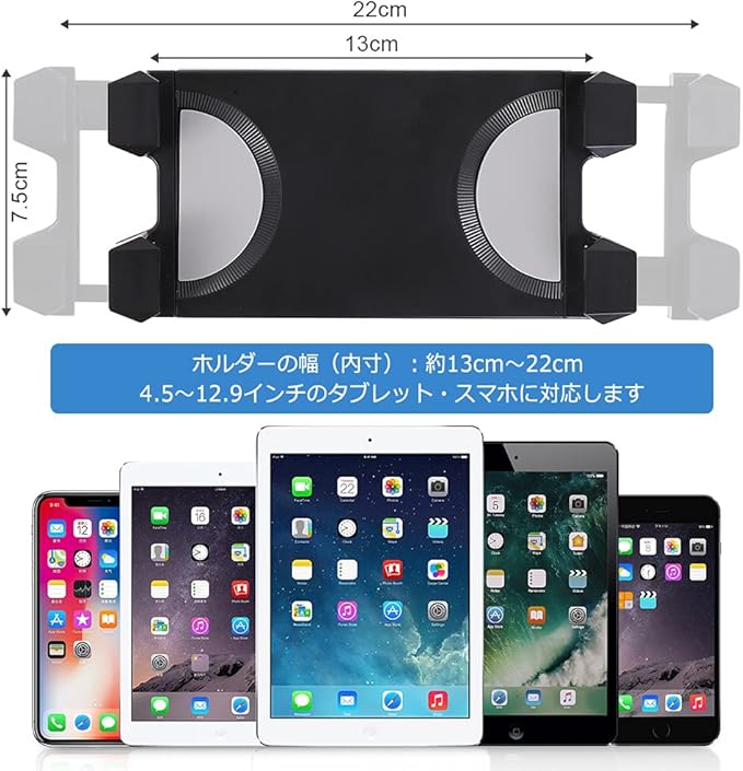 【対応サイズ】4.5~12.9インチのスマホスタンド。スマホにも使えます(ipad proやipadミニに対応します)
