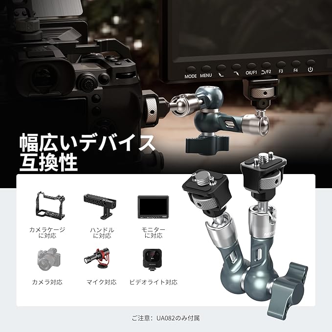 【幅広いデバイスに対応】マジックエクステンションアームは、NEEWERデスクスーパーCクランプ、GP-7アクションカメラマウント、GP-3三脚スマホホルダー(コールドシューアダプター付き)、CA013サクションカップマウント、F100/F400 PRO/F500カメラドモニター、RGB61/RGB62/RGB176-A1/PL81 LEDビデオライトなどとシームレスに連携します。 また、Small Rigクランプ、Hero 13/12/11/10 Black、Maxアクセサリー、X5/X4/Ace Pro/X3/Go 3アクセサリーにも対応します。