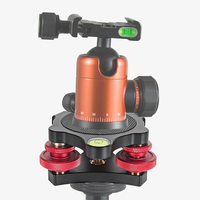 3 つの微調整ノブにより、水平方向に最大 +/- 5 度の調整が可能で、滑り止めの耐摩耗性ゴム製パッドとロック リング設計のダイヤルにより、カメラが完全に水平になり、安定した撮影が可能になります。
