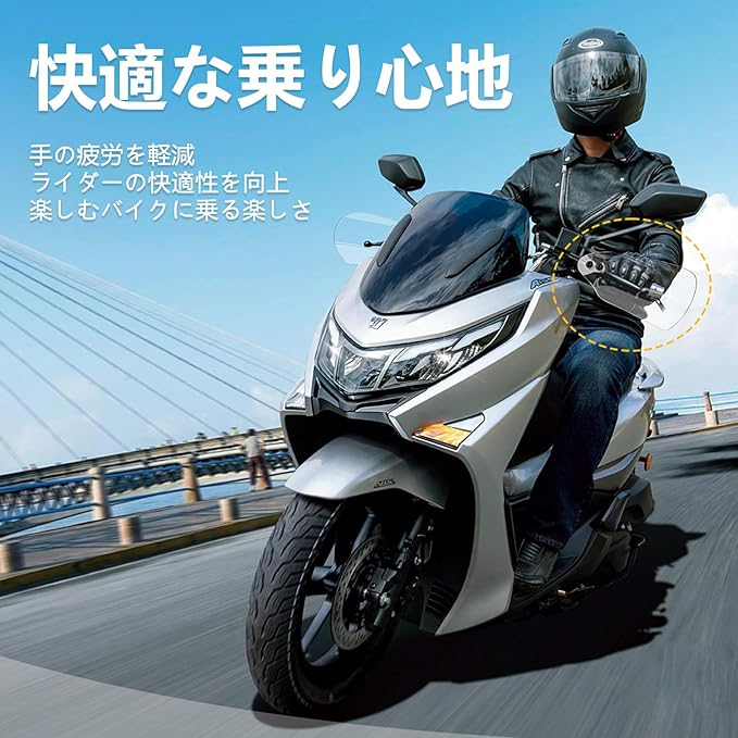 【安全性の向上】高速走行時でも飛び石避けや木の枝、泥その他の障害物から身を守ることができるバイク用ナックルガードです。ライダーの指の快適性が向上します