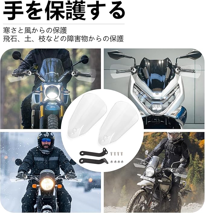 バイク ナックルガード 汎用 ナックルバイザー ハンドガード バイク 風防 防寒 防護 飛び石避け 雨避け 高耐久性 ハンドルガード 左右セットハンドルバー ウィンドガード (透明) | KAZESHOP