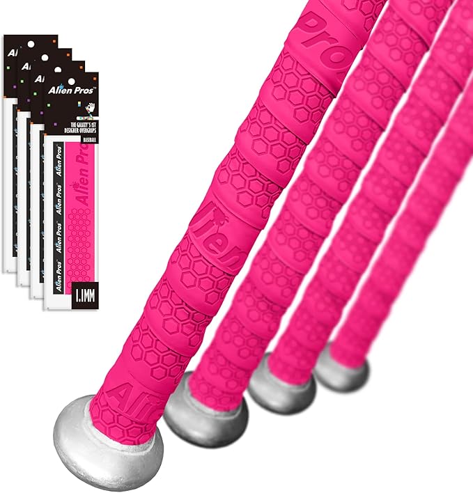 Alien Pros野球用バットグリップテープ(4グリップ)– 1.1 mmプレカット、プロ品質のバットテープ–古い野球用バットグリップの代替品–バットを保護して、壮大なホームランを打ちましょう(4グリップ,ピンク) | KAZESHOP