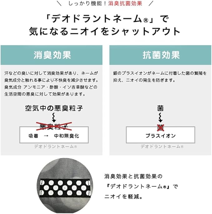 消臭効果と抗菌効果の「デオドラントネーム(R)」付き
