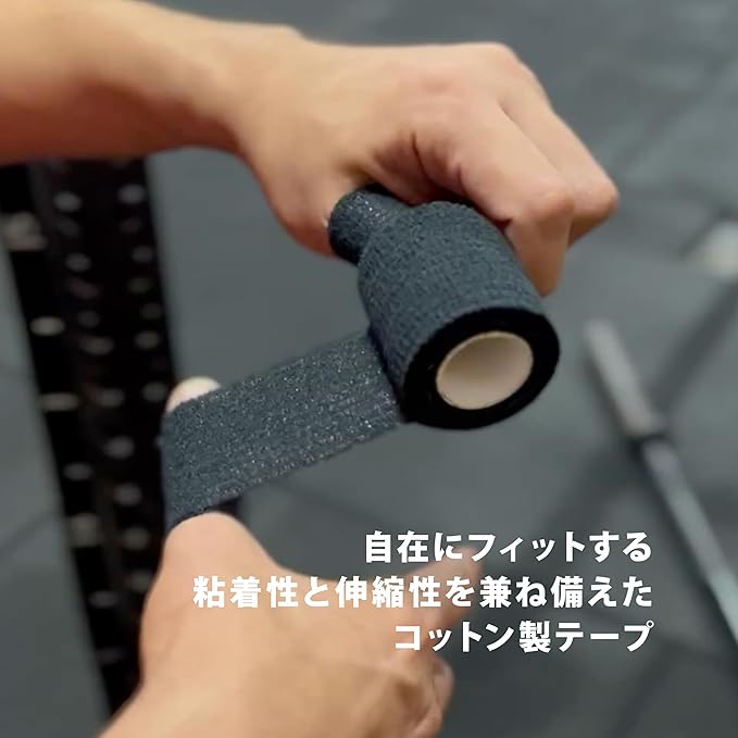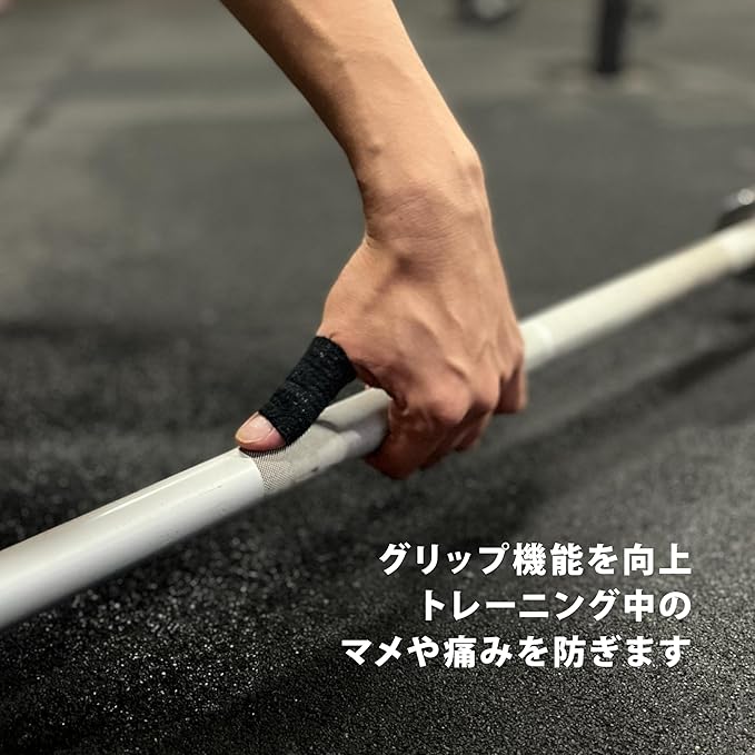 親指以外の指にももちろん使用することができ、クロスフィットや重量挙げなどのバーベルやダンベル使用時の摩擦をテープがほごしてくれます。