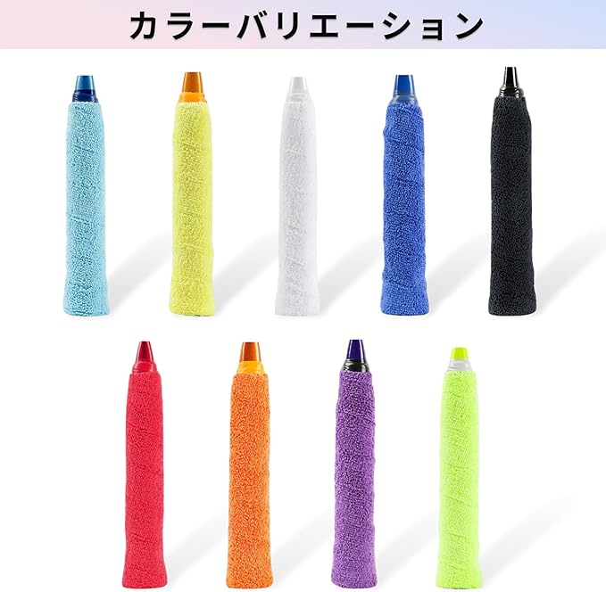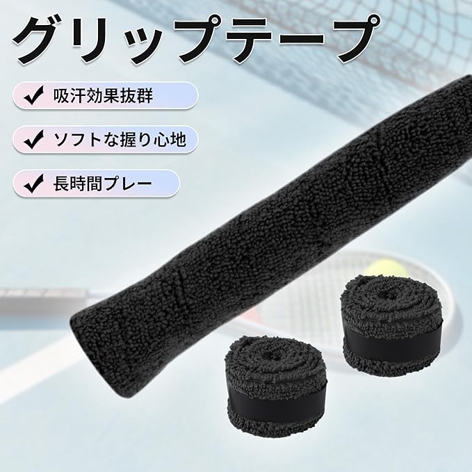 テニス、バドミントンなどのラケットスポーツに適した多目的アクセサリーで、オーバーグリップや交換テープとしても使用できます。さまざまなスポーツや機器のニーズに柔軟に対応します。