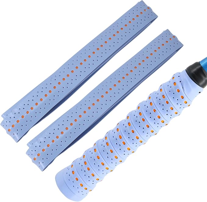 【仕様】タイプ:凸凹仕様の多孔型(二色) /サイズ:1100*25*1mm /カラー:ライトブルー(オレンジドット) /セット内容:グリップテープ x 2本(同色)
