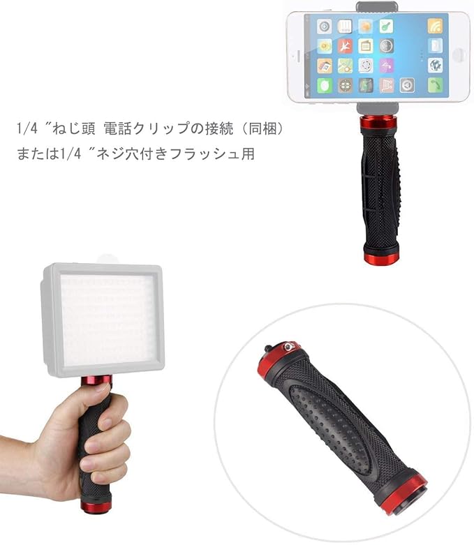 対応機種:1/4ネジ穴付きのハンディカム/DSLRカメラ、LEDビデオライトなどに適しています。