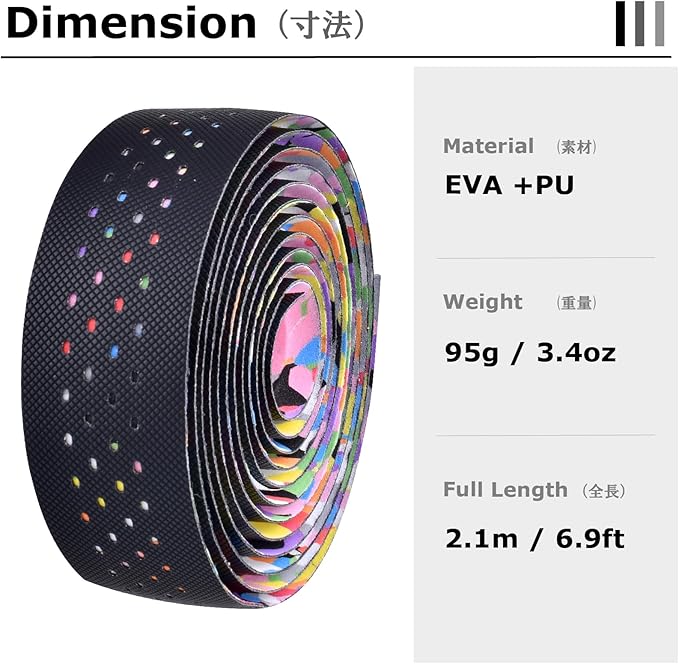 【サイズ】バーテープ幅30mm、長さ2.1m/本、重量は約76g/2本です