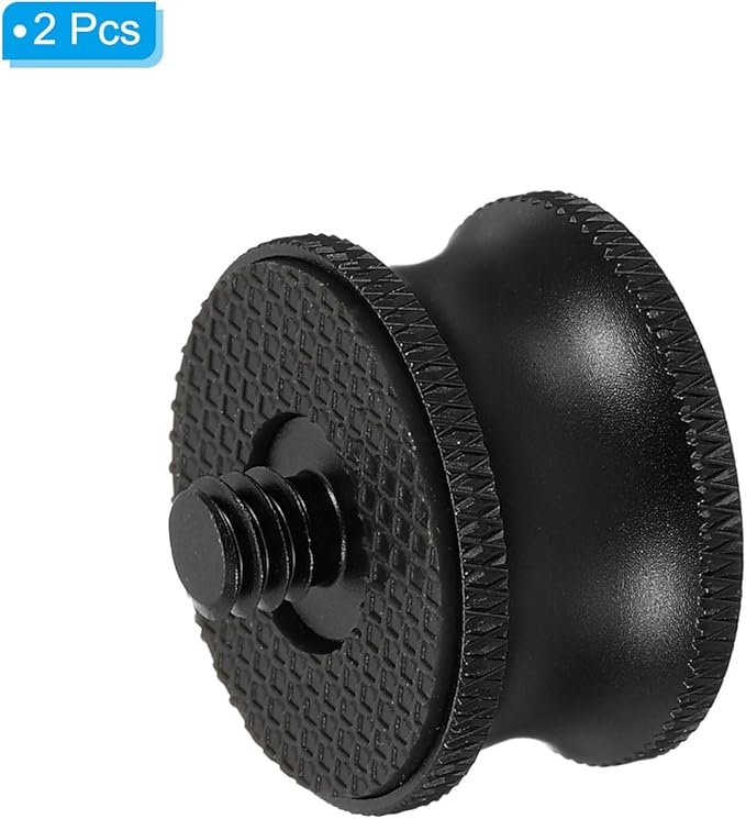 カラー:ブラック; 素材:アルミ合金; ねじサイズ:1/4オス - 3/8メス; ねじ長さ:5mm; 全体サイズ:25 x 20mm(D*H); パッケージコンテンツ:2 x カメラねじマウントアダプタ