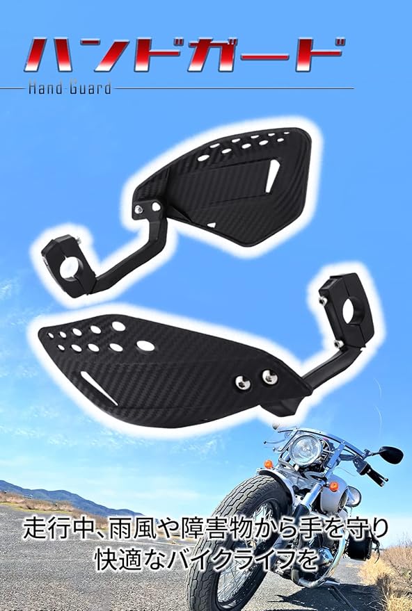 ✅スポーティーなデザイン:カーボン調のスポーティーなデザインで、バイクの外観を格好良く演出します。ハンドルバーに取り付けるタイプなので汎用的に使用できます。