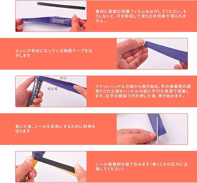 【その他の機会】ラケットの試合以外に、トレーニングに使うバーベル、ダンベル、自転車とバイクの取っ手、釣り竿の取っ手、道具なども取っ手の滑り止めとして使えるので、とても便利です。使いやすいグリップは、ぜひスポーツ、レジャー、仕事などに使ってください。