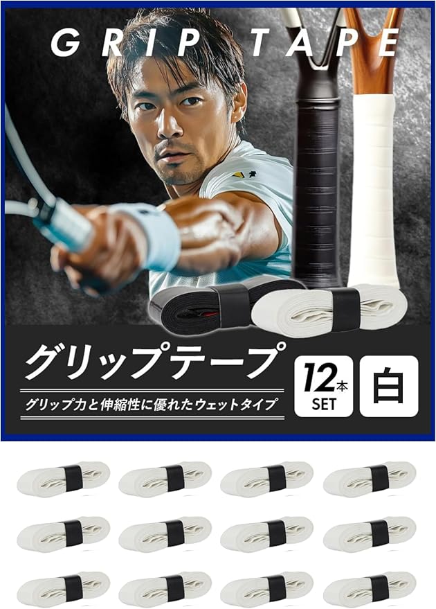 【大容量12本入りでコスパ抜群】12本入りで、毎日の練習や試合でも惜しみなく交換できて経済的!常に新品の握り心地をキープ。