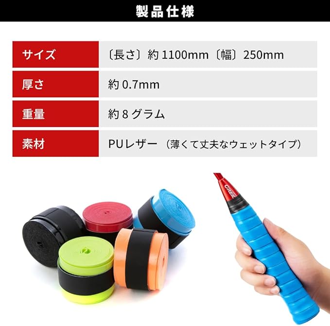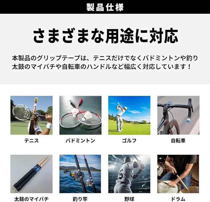 【用途】ラケットのほか、太鼓のバチ、トレーニングバーベル、ダンベル、自転車やバイクのハンドル、釣竿のハンドルなども、ハンドルクリートとして便利に使えます。 使い勝手が良いので、スポーツやレジャー、仕事などでぜひご活用ください。
