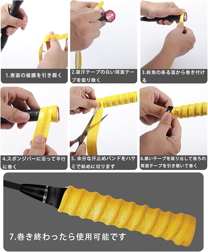 【使いやすい】テニスグリップは粘りが良いです、フィルムを剥がして、ラケットのグリップに巻くだけ。
