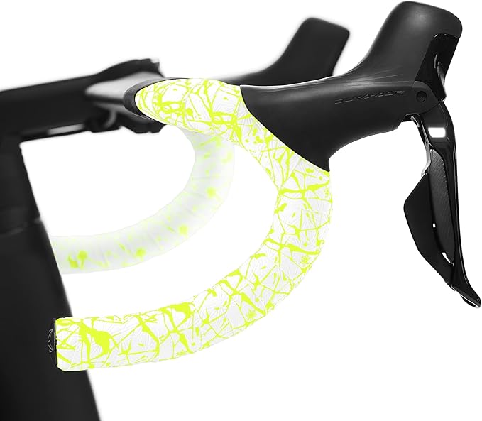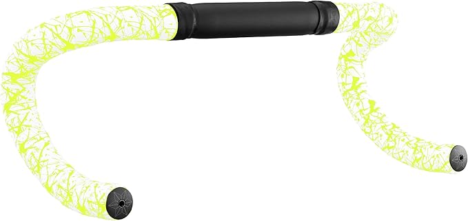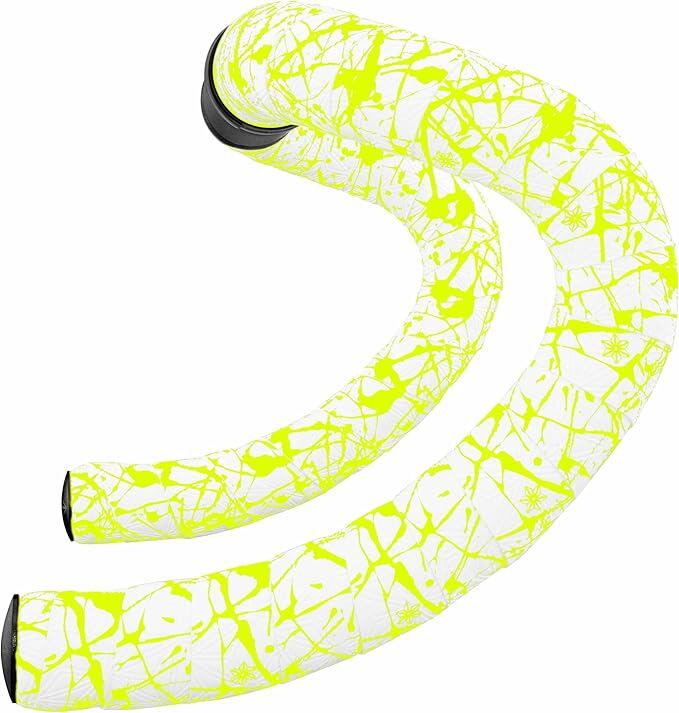 Supacaz Bartape - スーパースティッキークッシュ - スプラット - リミテッド- ホワイト ネオンイエロー+ブラックスタープラグ - サイクリングハンドルバーテープ | KAZESHOP