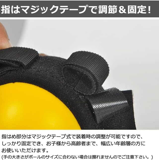 指力と握力を鍛える!リハビリに、筋力強化のトレーニングに、エクササイズに!ホールド力を鍛え、柔軟性を向上、疲労緩和にも効果を発揮します。指はめ部分はマジックテープ式で装着時の調整が可能ですので、しっかり固定でき、お子様から高齢者まで、幅広い年齢層の方にお使いいただけます。(手の大きさがボールのサイズに合わない場合は握れませんのでご注意下さい。)