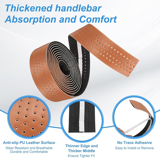 PUレザー(表面)/ EVAフォーム(裏地)から作られた自転車ハンドルバーラップは、優れたグリップ、衝撃吸収、耐久性を提供し、ライド中の心地よいさとパフォーマンスを向上させます。
