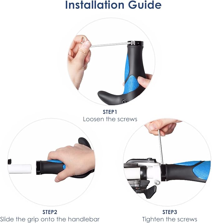 取り付け簡単:自転車のハンドルバーにハンドルを取り付け、ハンドルハンドルハンドルの両端をアルミニウム合金製のロックリングで固定したダブルロックの後、付属の六角レンチでハンドル端のボルトを締めてください。