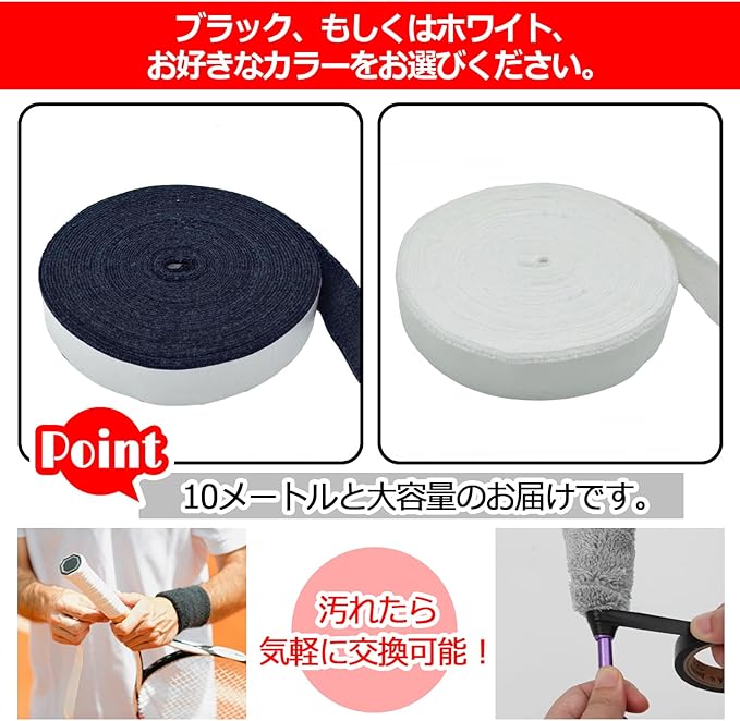 ブラック、もしくはホワイト、お好きなカラーをお選びください。10メートルと大容量のお届けです。汚れたら気軽に交換可能!