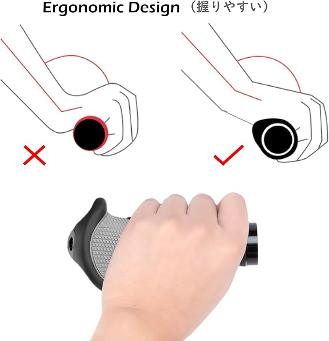 ✅【牛角デザイン】-- 握りやすい自転車グリップ、抜群の操作性を実現。人間工学を応用したグリップで身体への負担を軽減し、長距離を走っても疲れません。