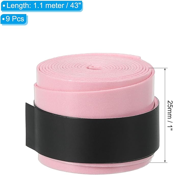 カラー:ライトピンク;素材:PU;サイズ:1.1メートル x 25mm / 43 x 1"(長さ 幅);パッキングリスト:ラケットグリップテープ9本