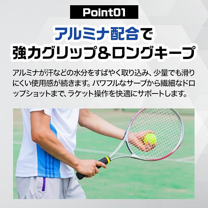 手汗などの水分をしっかりと吸収するアルミナを配合。