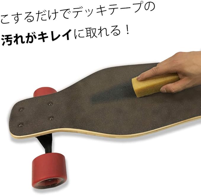 商品説明:スケートボードに土や埃、スケボーシューズの靴底で、デッキテープが汚れてきた時にはコレ!デッキテープ用消しゴムです! 一度使ったらヤミツキになる清潔感。汚れた部分をこするだけであっという間にキレイになります!大切なスケボーデッキやクルージングスケートボード、ロングスケートボードなどにぜひお試しください!ぴかぴかデッキで、技もキマル‼