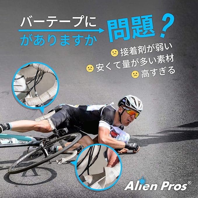 Alien Prosでは、お気に召していただけなかった場合、返金致します。私たちは最高の自転車用ハンドルバーテープを目指していますが、万が一101%ご満足いただけない場合は、お知らせください。誠意をもって対応致します。
