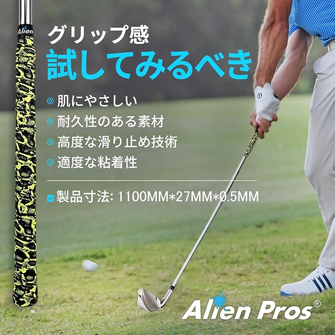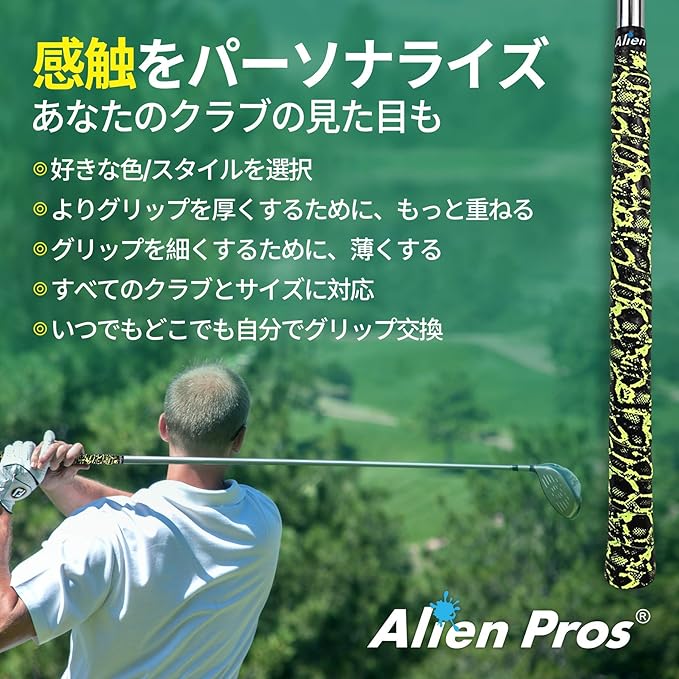 グリップを巻き直す手間はもうありません。Alien Pros ゴルフグリップラップテープを使用すれば、溶剤やキットを使わずに、簡単に剥がし、巻きつけるだけです。そのため、いつでも好きな時に、巻きなおすことができます。店舗にいく必要もありません。1分もかからずに、お好みのスタイルのまったく新しい、機能的なゴルフクラブグリップが手に入ります。