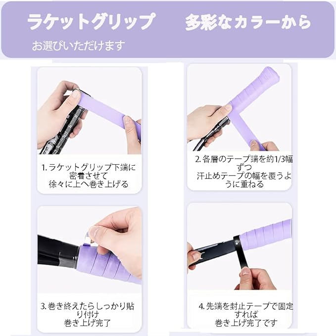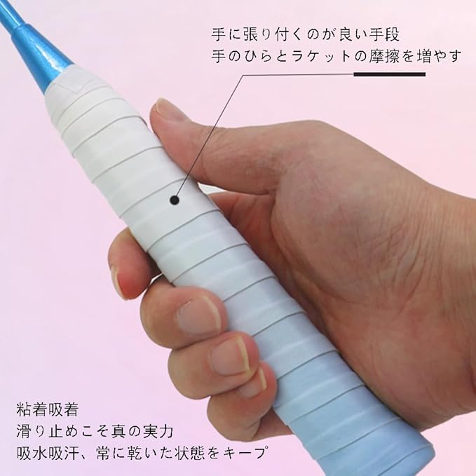 【幅広い用途】テニス、バドミントン、釣り竿、ゴルフクラブ、太鼓のハチなど、ラケットの試合以外に、トレーニングに使うバーベル、ダンベル、自転車とバイクの取っ手、釣り竿の取っ手、道具なども取っ手の滑り止めとして使えるので。
